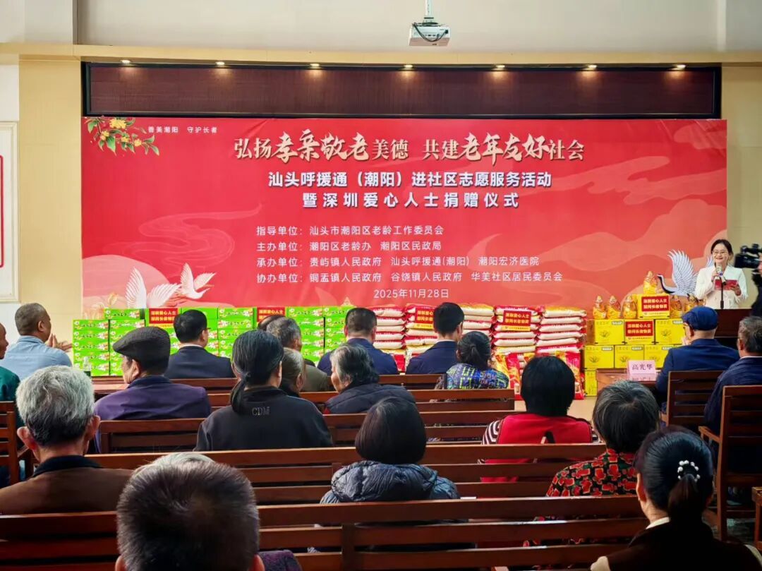 情暖桑榆晚,爱心续新篇。11月28日,汕头呼援通潮阳中心进社区志愿服务暨深圳爱心人士捐赠仪式在贵屿镇华美社区举行。深圳爱心人士再次捐赠超43万元款物支持呼援通居家养老服务事业,通过“公益捐赠+志愿服务”的形式,为潮阳长者送关怀,也为当地居家养老公益事业再添民生暖意。